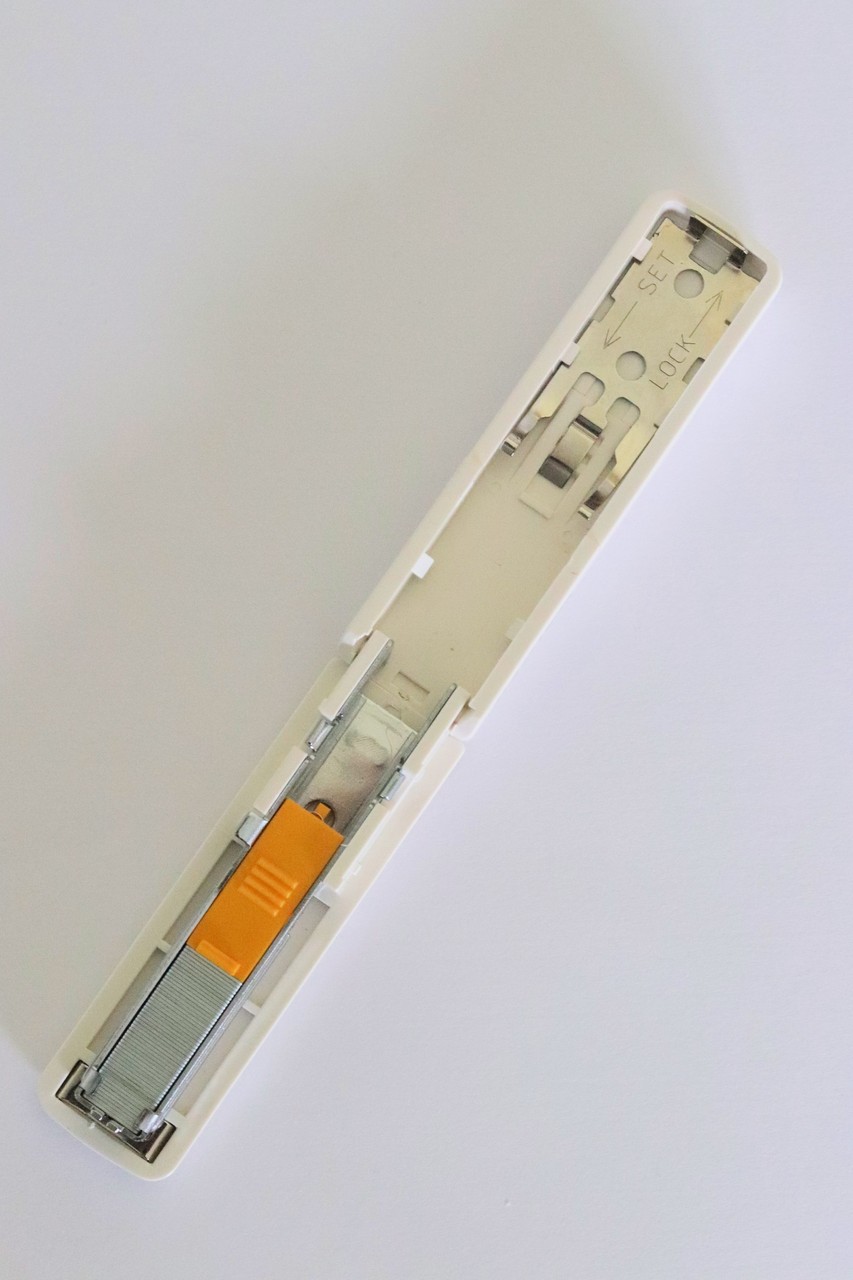 通常のホッチキスと比べると、サイズ差は一目瞭然で