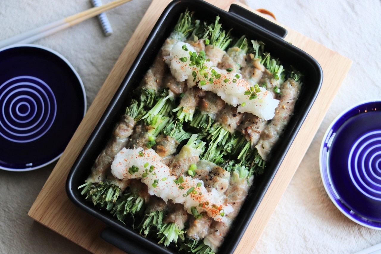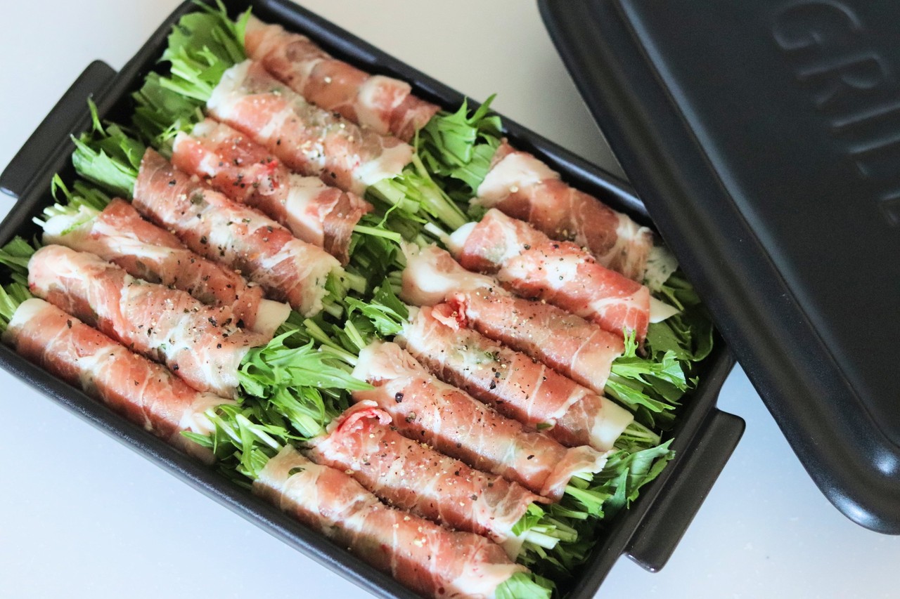 この日は、水菜を豚肉のスライスで巻いて。