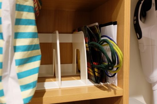 紙袋は積み重ねるのではなく、立てて収納することで袋ごとのサイズの確認もしやすいですし、雪崩がおきることもありません。