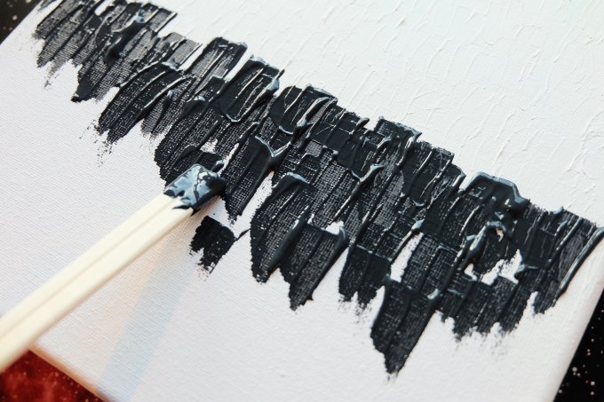ダイソーのキャンバス・アクリル絵の具(白・黒)・割り箸。