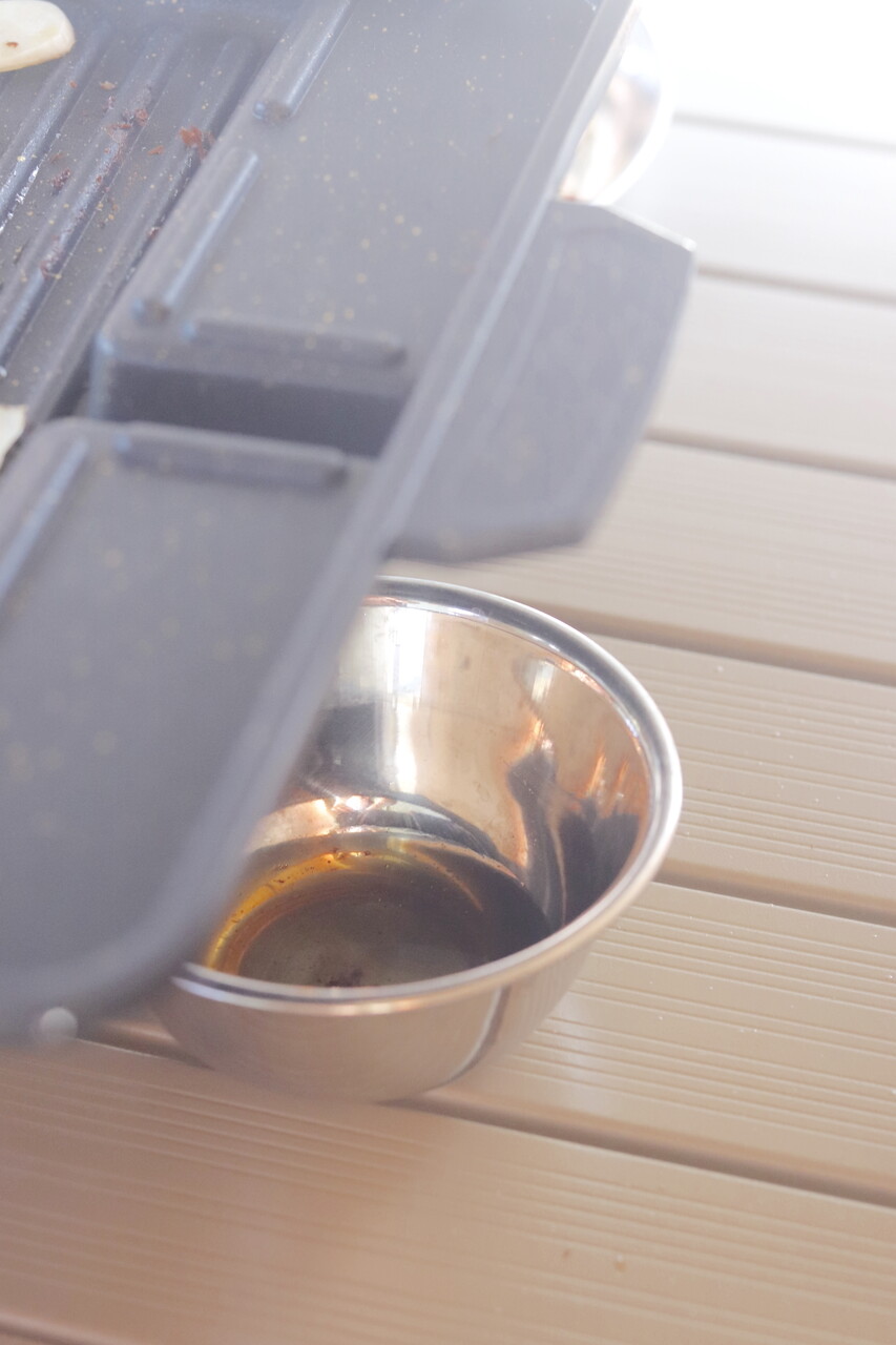 油がプレートの真ん中から落ちて