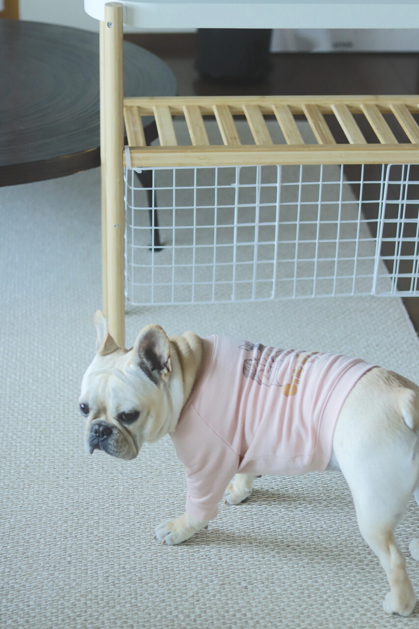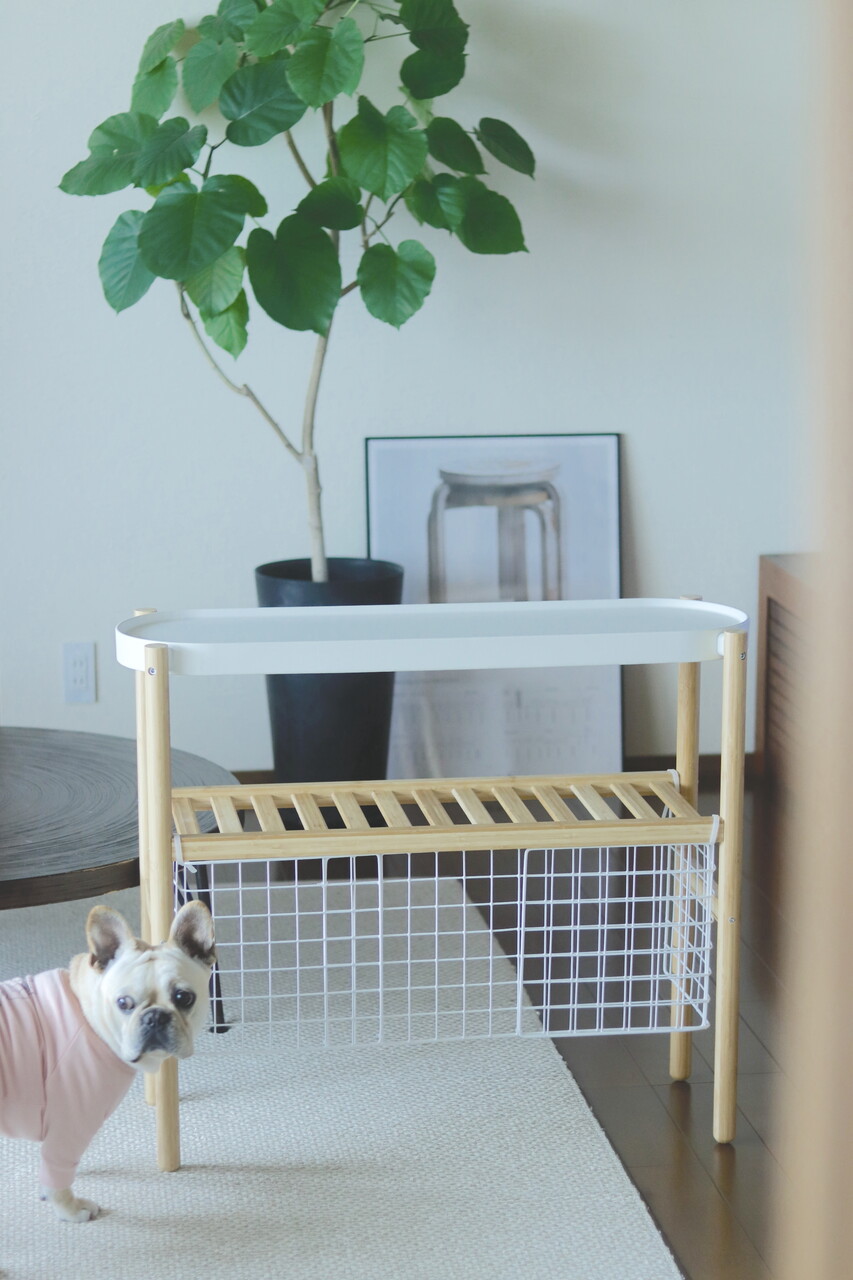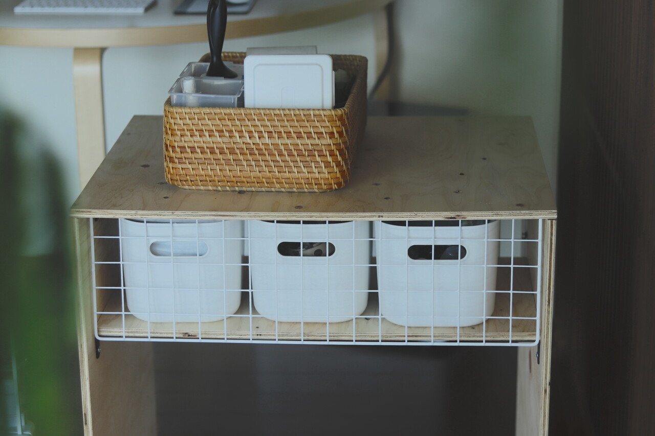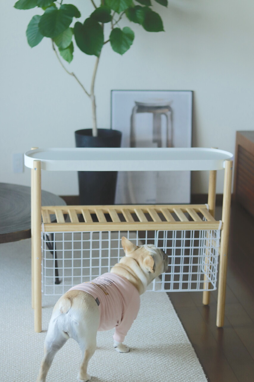 上のティッシュを食べたり、下段のカゴを