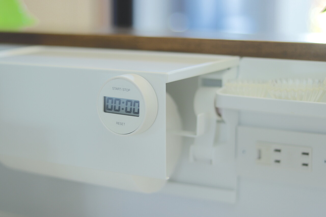 キッチンタイマーを貼ったり。
