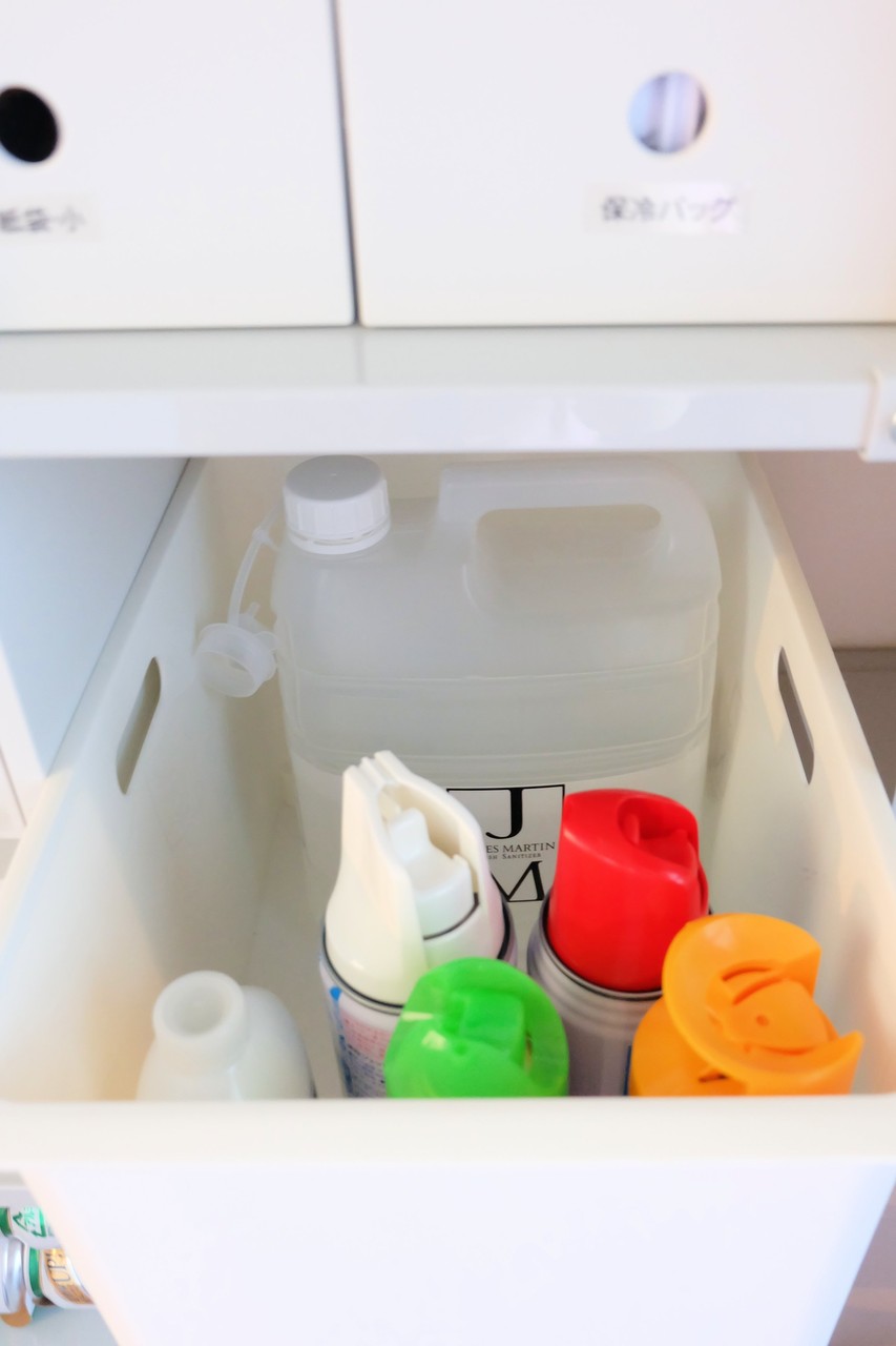 ここには、除菌消臭スプレーや洗剤の詰め替え、