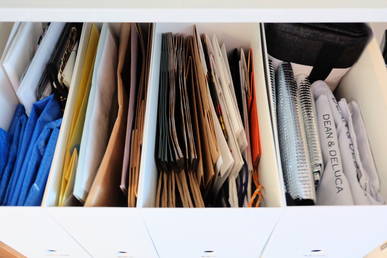 ファイルボックスには紙袋やビニール袋など。