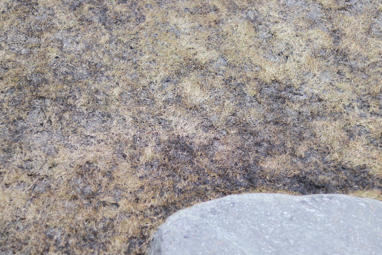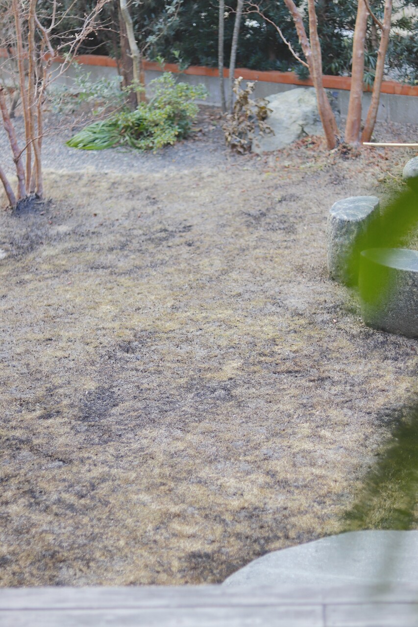 冬の間は枯れてしまう芝生。