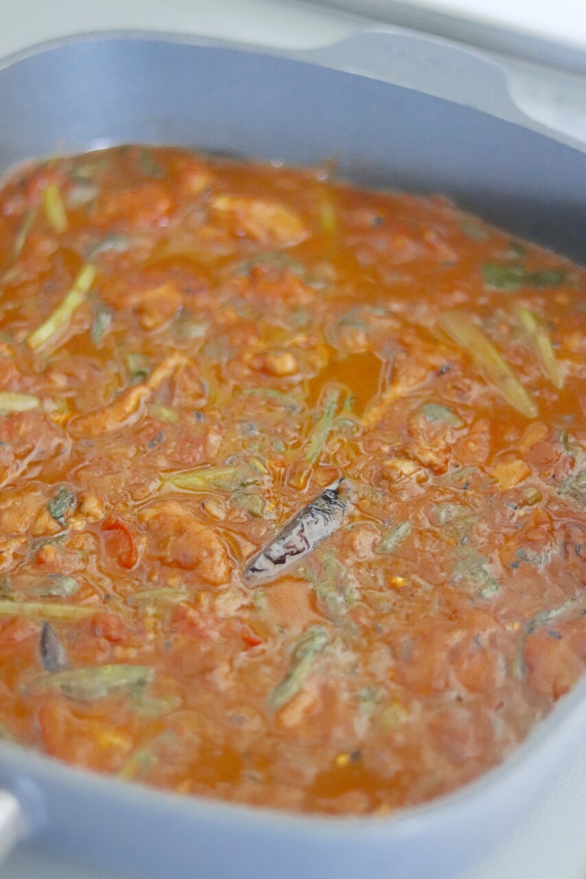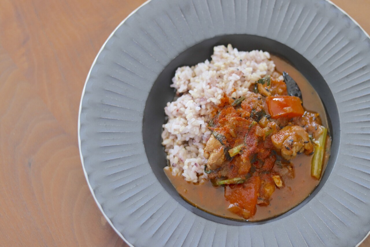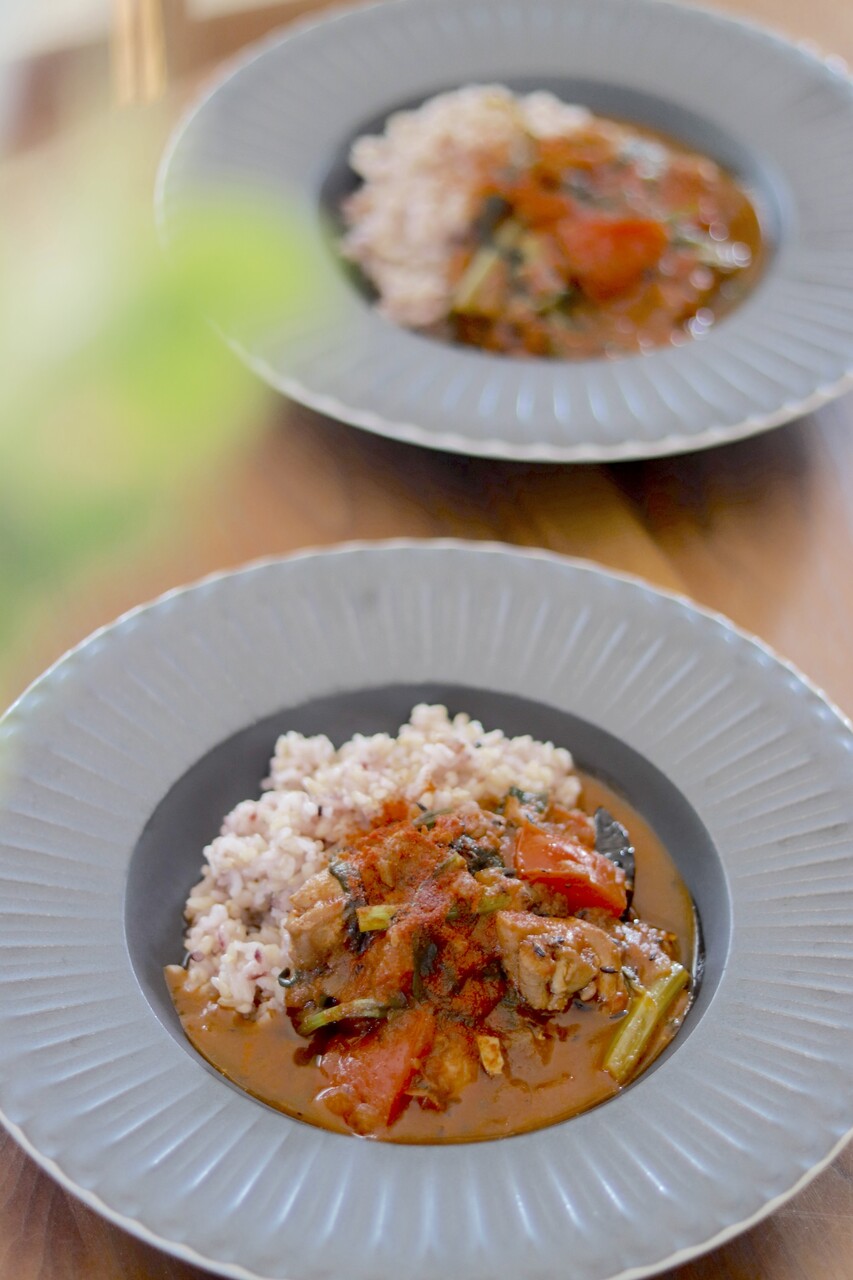トマトと春菊のチキンカレー。