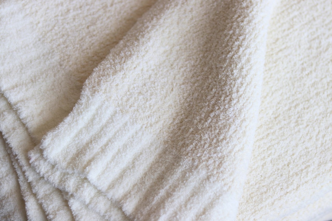 ふわっふわのモール糸使いのシンプル毛布。