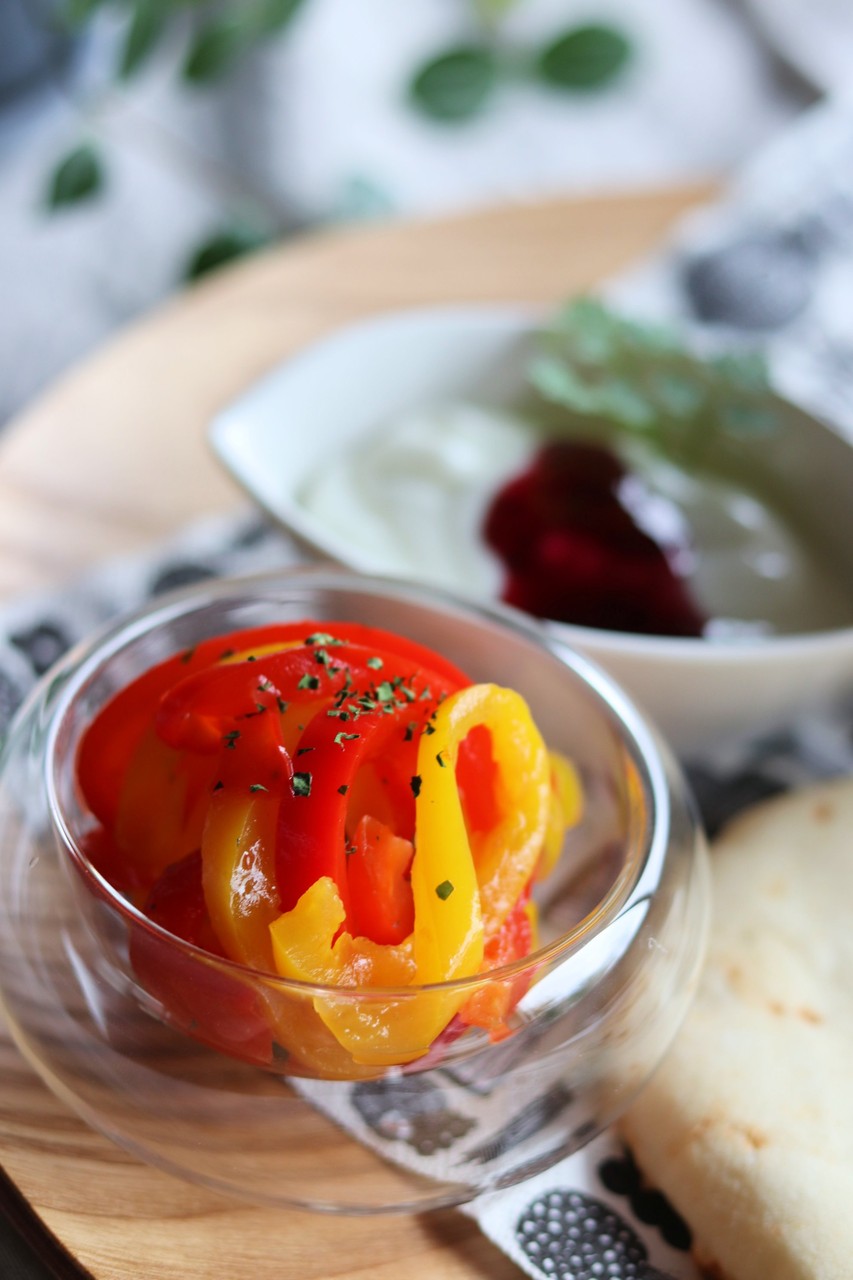 常備菜のパプリカマリネは、KINTOのグラスに。