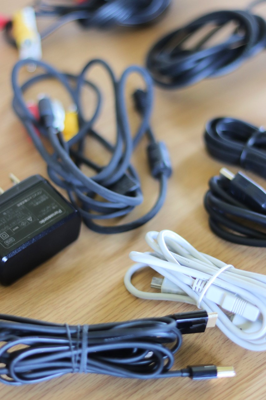 AVケーブルや、充電器、接続ケーブルの数々。